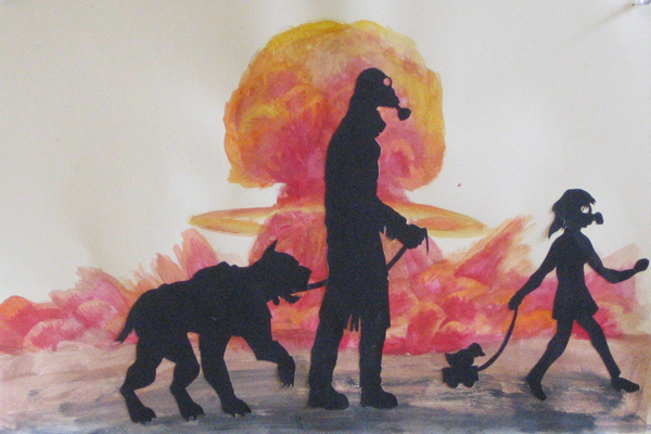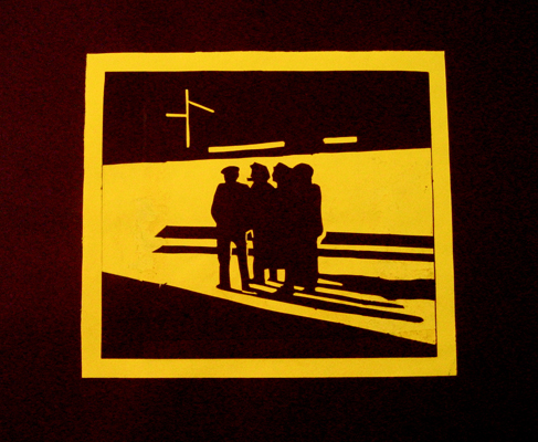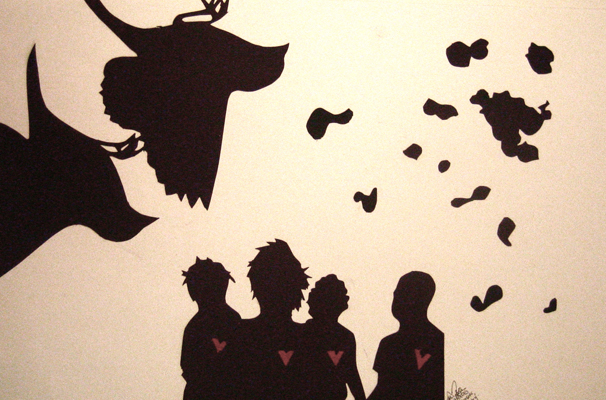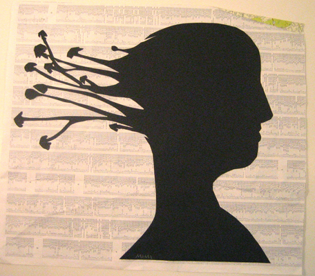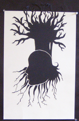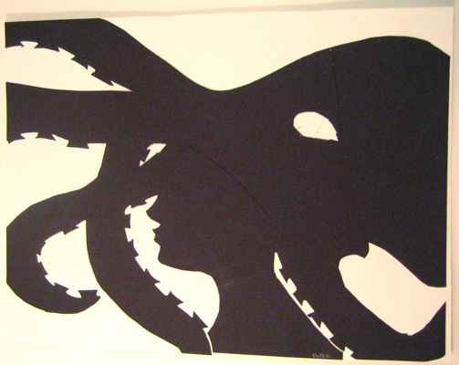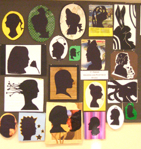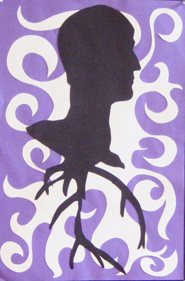 In this project students used contour line to create cut paper silhouette drawings. Beginning students invented scenes that show movement, inspired by the work of contemporary artist Kara Walker. Intermediate students drew and cut inventive protraits of a classmate.