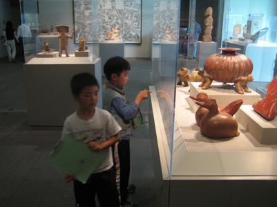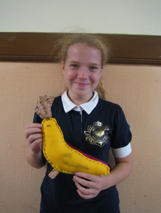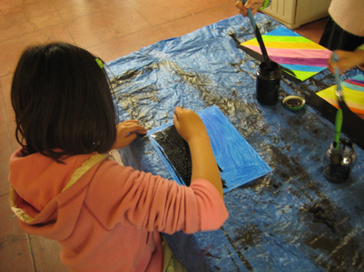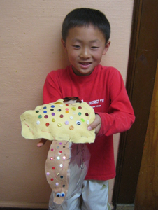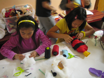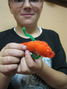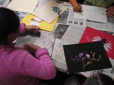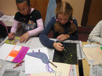 We examined the differences and similarities between the characteristics of mammals, amphibians, reptiles, birds, fish, and insects. Each artist then developed a hybrid creature made of two or more animals from different classifications in the animal kingdom. This hybrid was rendered in chalk pastel, scratchboard, and finally sewn in cloth as a stuffed animal. We also visited the DeYoung museum to examine the animal hybrids in Mesoamerican art.